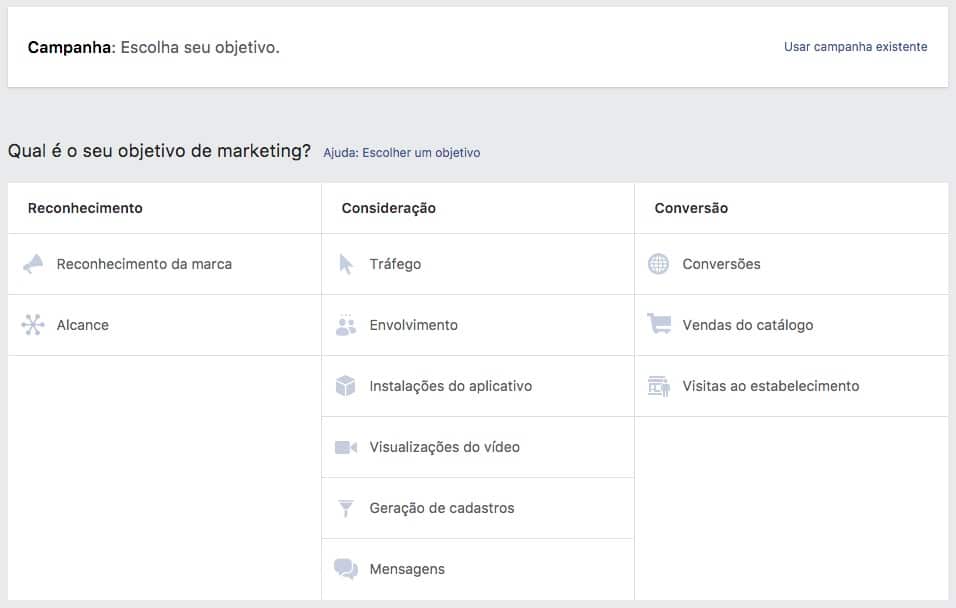 É importante que você conheça bem a diferença entre os diferentes tipos de Objetivos das Campanhas que existem no Gerenciados de Anúncios do Facebook Ads.